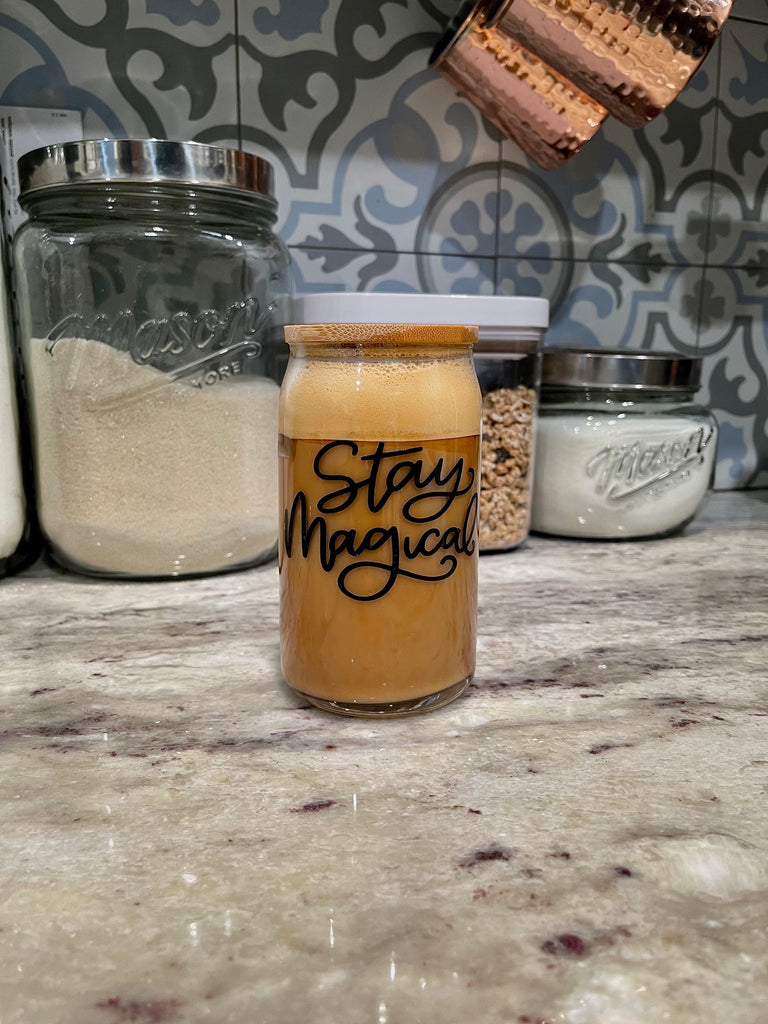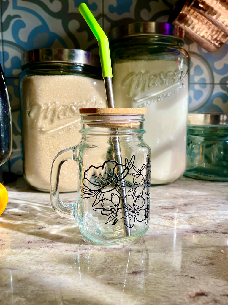 Includes a bamboo cover with hole for a straw, order one of our exclusive designs or customize your own today!